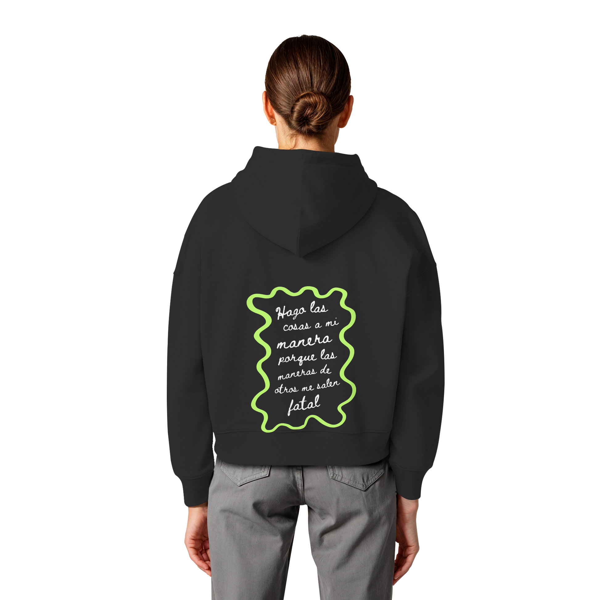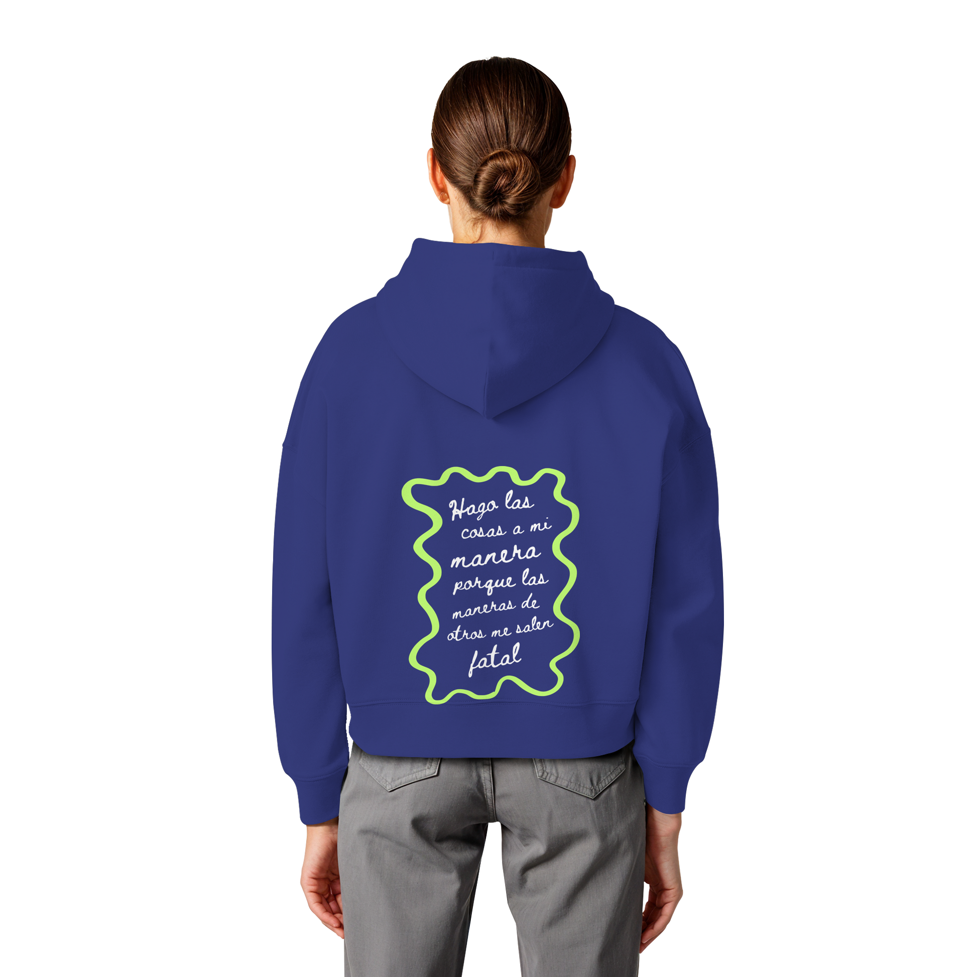 Recomendación: Esta prenda es corte boxy femenino, esto significa que talla normal pero el estilo no es ceñido, es holgado y de hombros caídos. Nuestra recomendación es que elijas tu talla habitual femenina.
