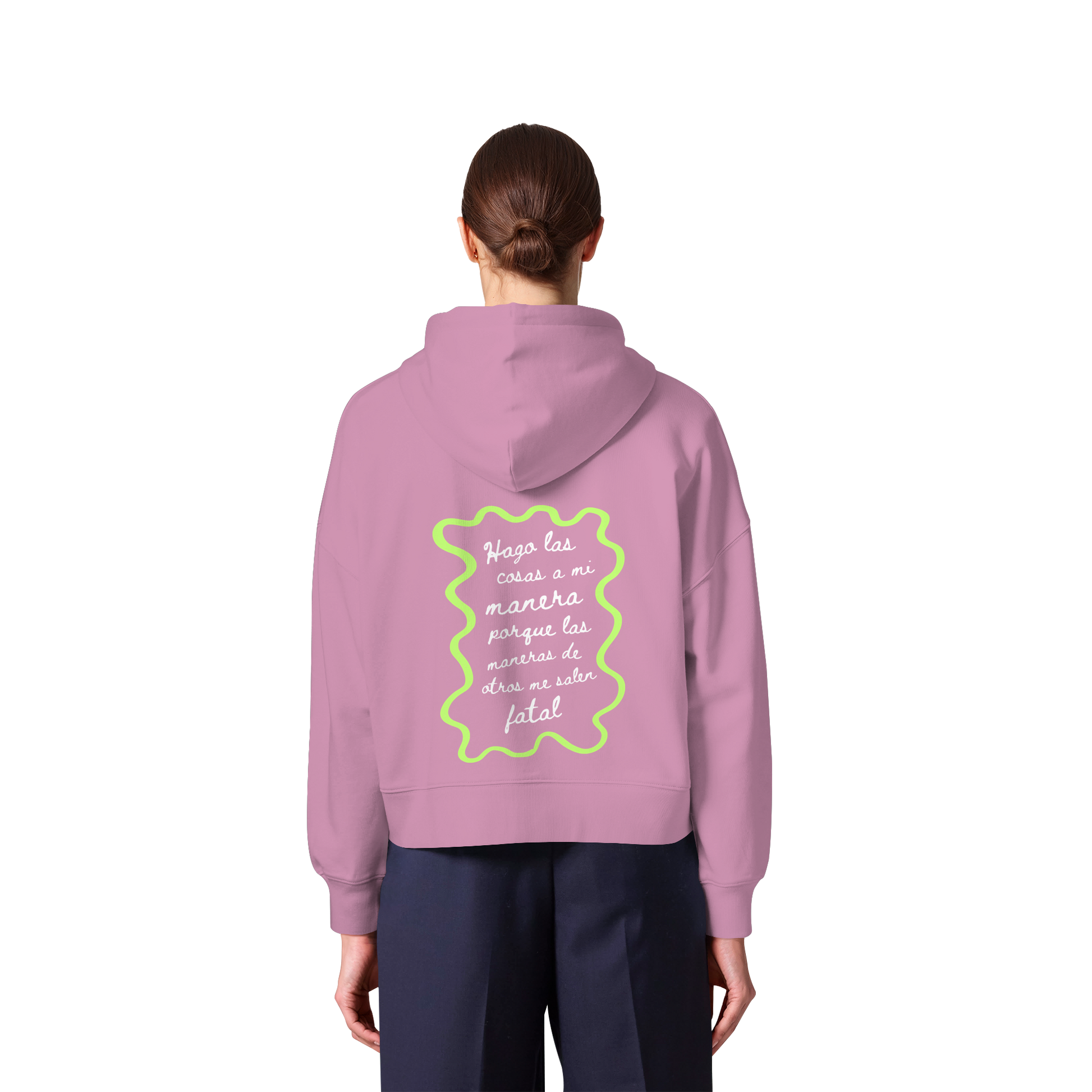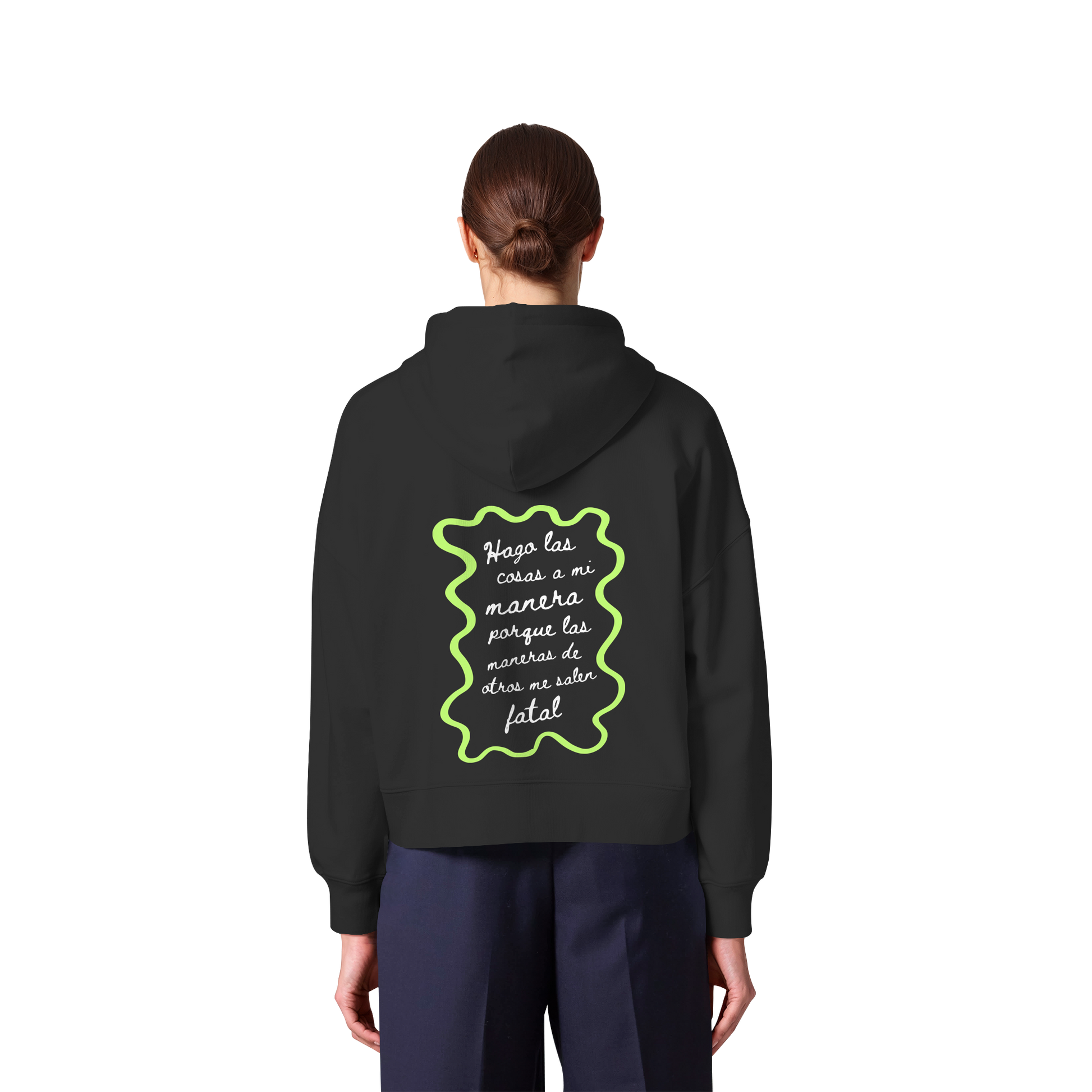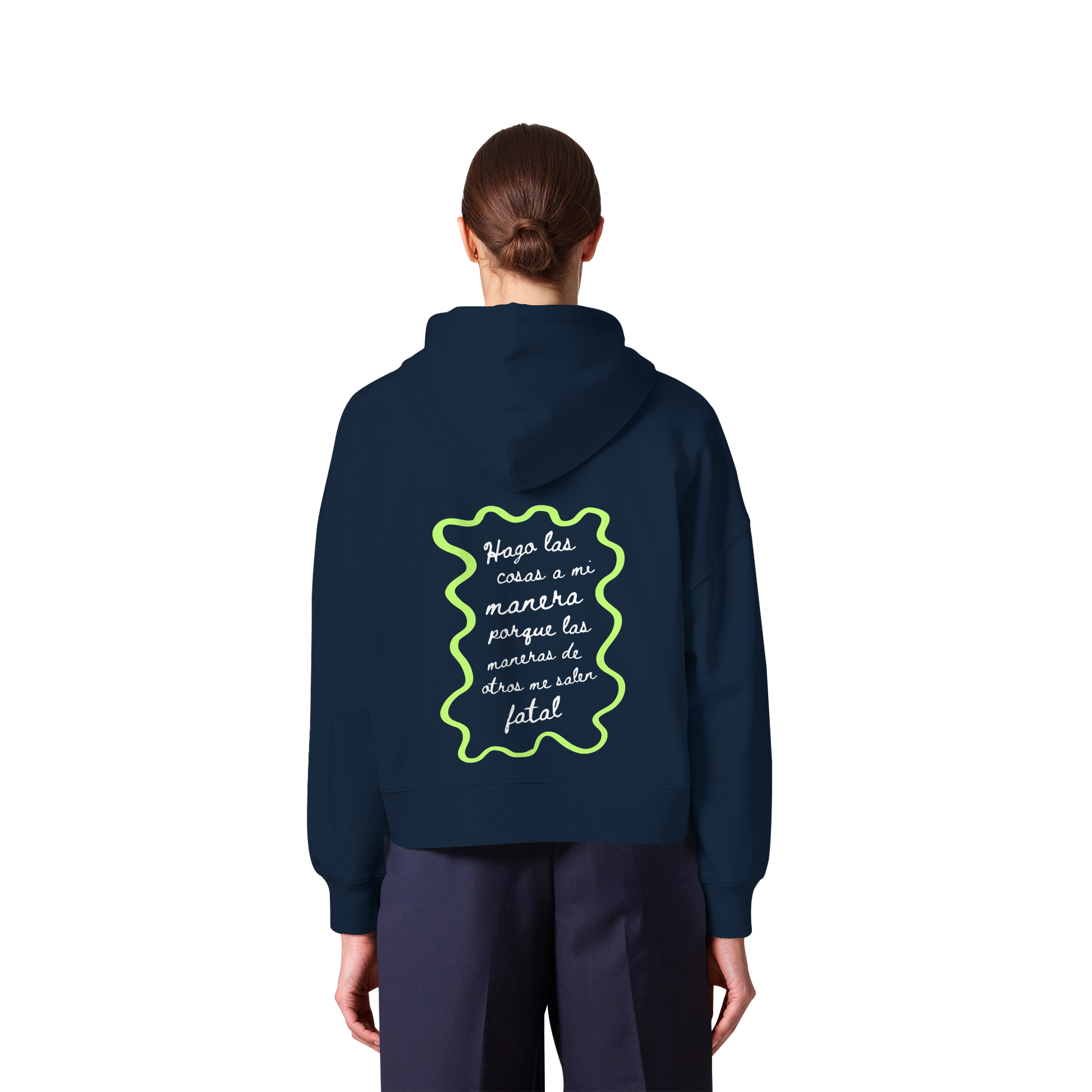 Recomendación: Esta prenda es corte boxy femenino, esto significa que talla normal pero el estilo no es ceñido, es holgado y de hombros caídos. Nuestra recomendación es que elijas tu talla habitual femenina.